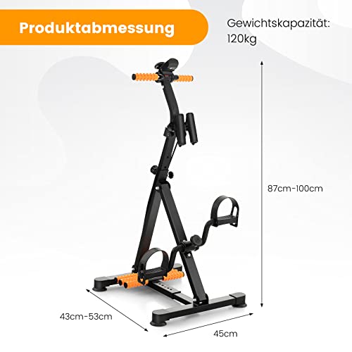 COSTWAY Heimtrainer Bewegungstrainer Pedaltrainer für Senioren, Hand Arm Bein Knie Fitnessgerät mit LCD Display, höhen- & längenverstellbar, LBH: 43-53 x 45 x 87-100 cm, Arm und Beintrainer Senioren