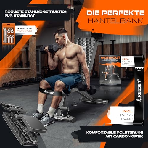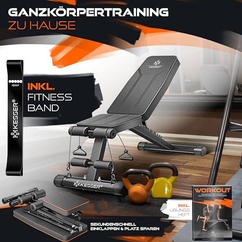 KESSERยฎ Klappbare Hantelbank Multifunktionale Trainingsbank mit Rรผckenlehne 500kg Belastbarkeit | verstellbare Bank Fitnessgerรคt zum Bankdrรผcken | Ganzkรถrpertraining Schrรคgbank fรผr Fitness & Training