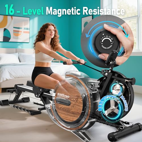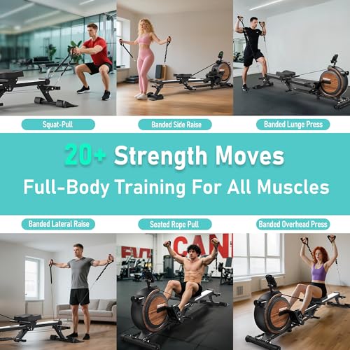 Rudergerät für Zuhause Klappbar Rudergeräte kombiniert mit Krafttraining, Magnetisches Rudergerät mit Bluetooth & 16-Stufigem Verstellbaren Widerstand